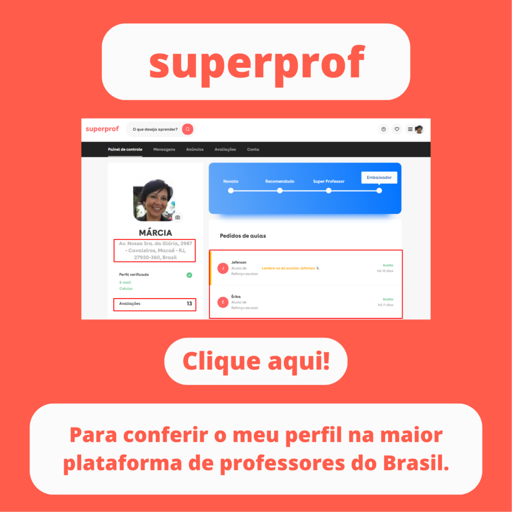 Então, gostaria de me apresentar. Sou professora de Matemática com experiência em aulas particulares e com estágio concluído em EJA (Educação de jovens e adultos). Durante a faculdade, além de todas as disciplinas da grade de matemática e das disciplinas de pedagogia como Fundamentos da Educação I, II, III e IV, Prática de Ensino I, II e III e outras, concluí Seminário de Educação à Distância, Fundamentos da Educação de Jovens e Adultos e Matemática Financeira.